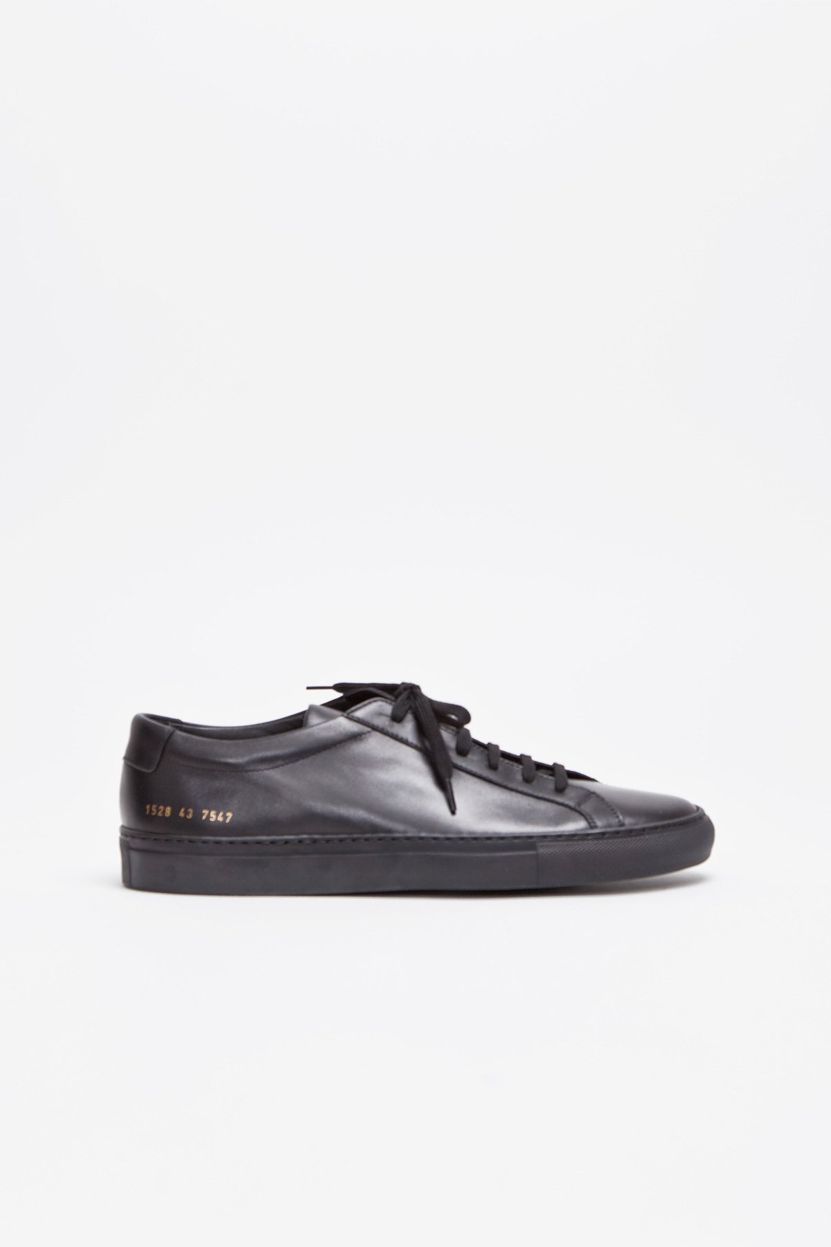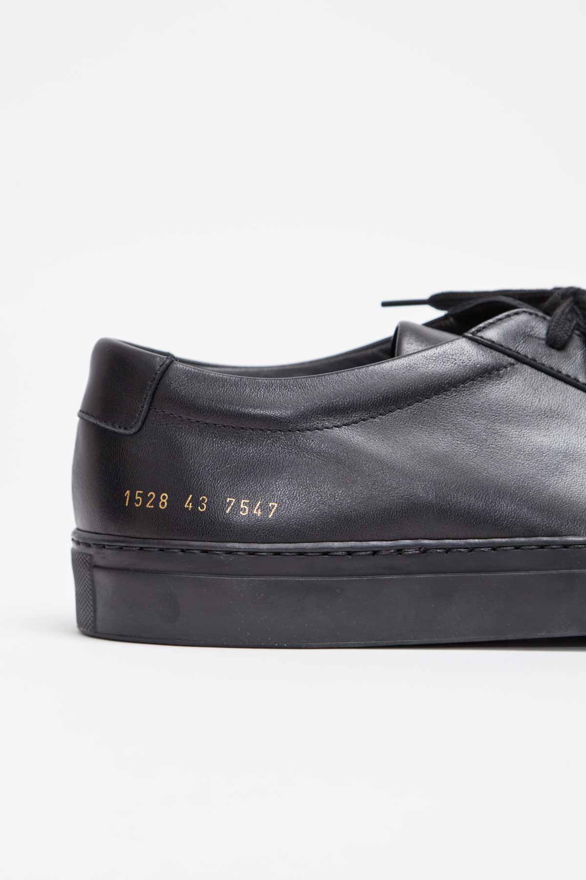 Leather sneaker from Common Projects. Made in Italy. Leather lining. Tone on tone stitching and lacing. Rounded toe shape. Sits on a white rubber sole. Comes with an extra pair of laces and dustbag. Please note that these fit big so size one down. Made in Italy, 100% Leather. EU 42 is equal to US 9.
